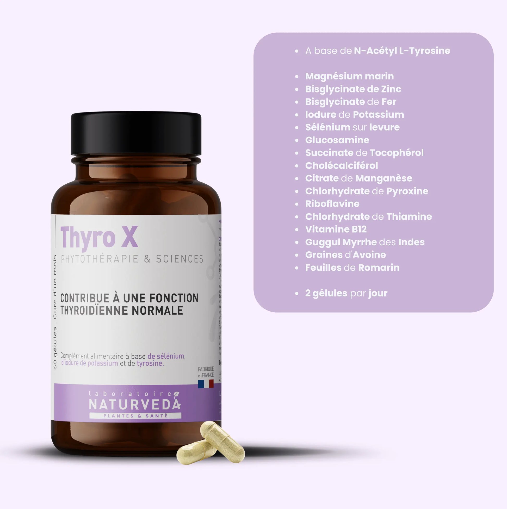 - Contribue à réduire la fatigue liée aux déséquilibres thyroïdiens